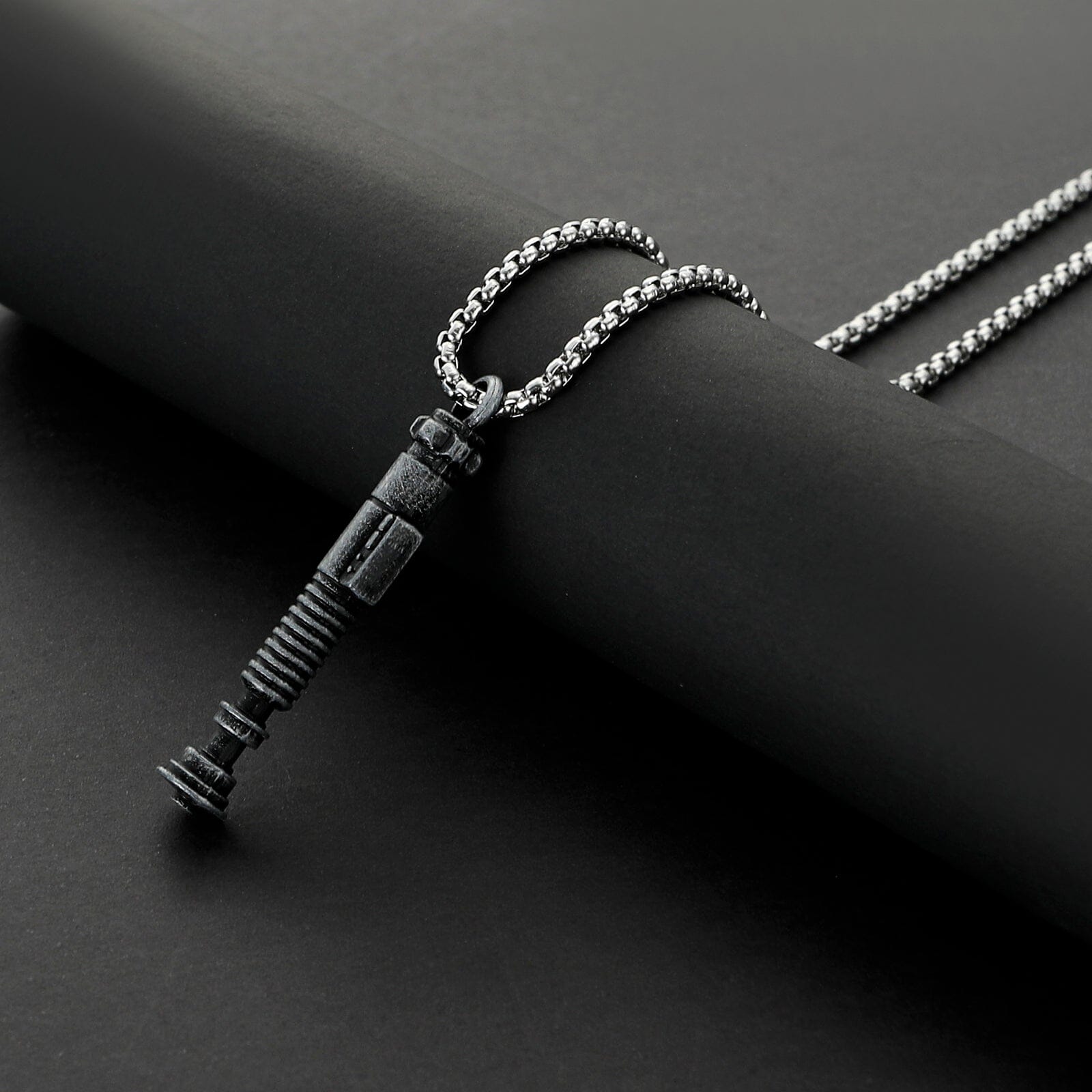 Forged from durable alloy and finished in a weathered metallic texture, this miniature saber pendant captures every detail of the legendary hilt. Paired with a premium chain, it sits close to your heart as a symbol of courage, resilience, and the belief that destiny is shaped by the choices we make.